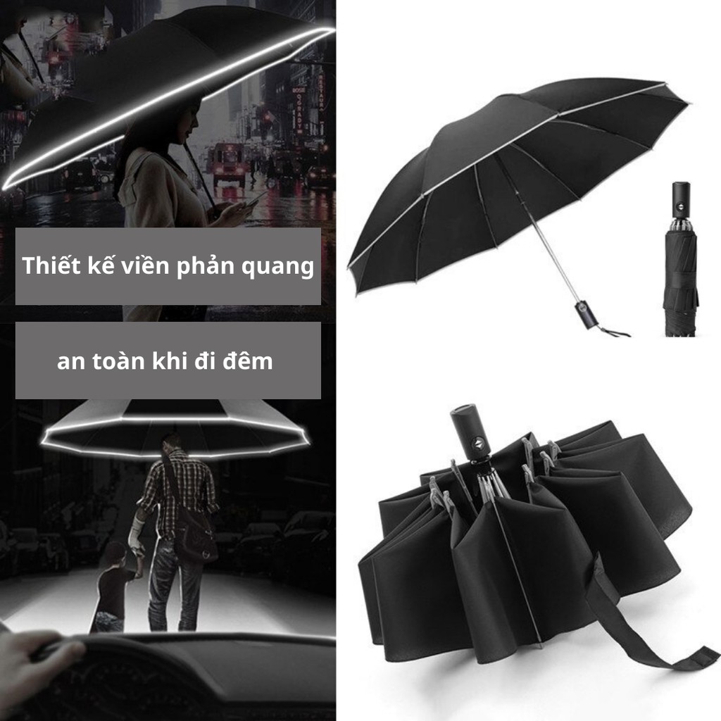 - Viền ô được thiết kế dải dạ quang phản quang và tay cầm giúp bạn nhìn rõ mọi vật rõ ràng trong bóng tối đêm mưa gió, làm cho nó thuận tiện hơn và an toàn hơn để đi vào ban đêm.