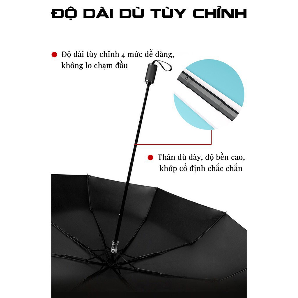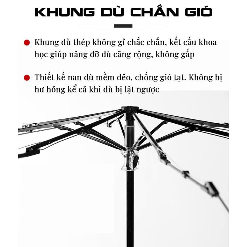 Thân Ô: được làm từ thép và Inox . Tay cầm: Nhựa chắc chắn. Dù Che Mưa