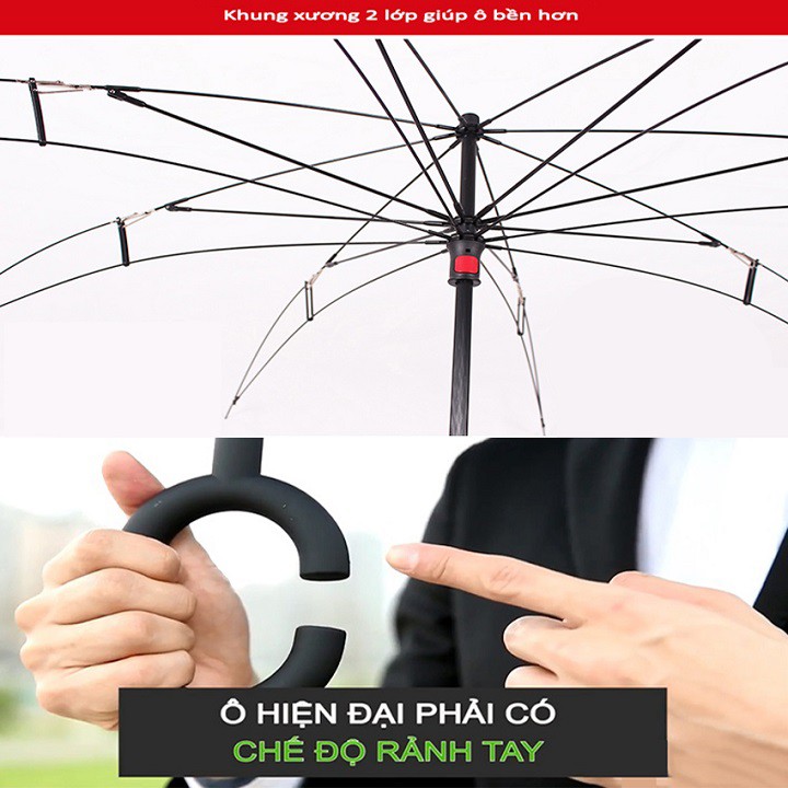 📌Chất liệu: khung xương được làm từ thép dẻo chịu lực, tán ô là vải không thấm nước