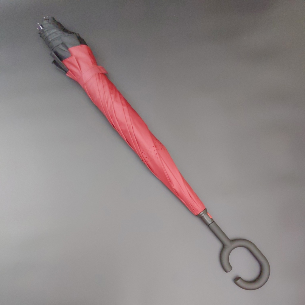- Một điểm hay khác của ô mở ngược thông minh đến từ Nhật Bản, đấy là phần tay cầm. Tay cầm của ô thiết kế dạng chữ C. Thiết kế này mang đến sự đa năng và tiện dụng. Bạn có thể luồn tay vào tay cầm chữ C, giữ ô bằng cổ tay hay khuỷu tay. Như vậy, cả hai bàn tay sẽ rảnh rỗi để cầm nắm nhiều đồ dụng, vật dụng khác. Bạn cũng có thể treo thêm các túi đồ nhẹ vào tay cầm chữ C.