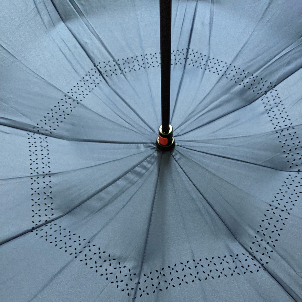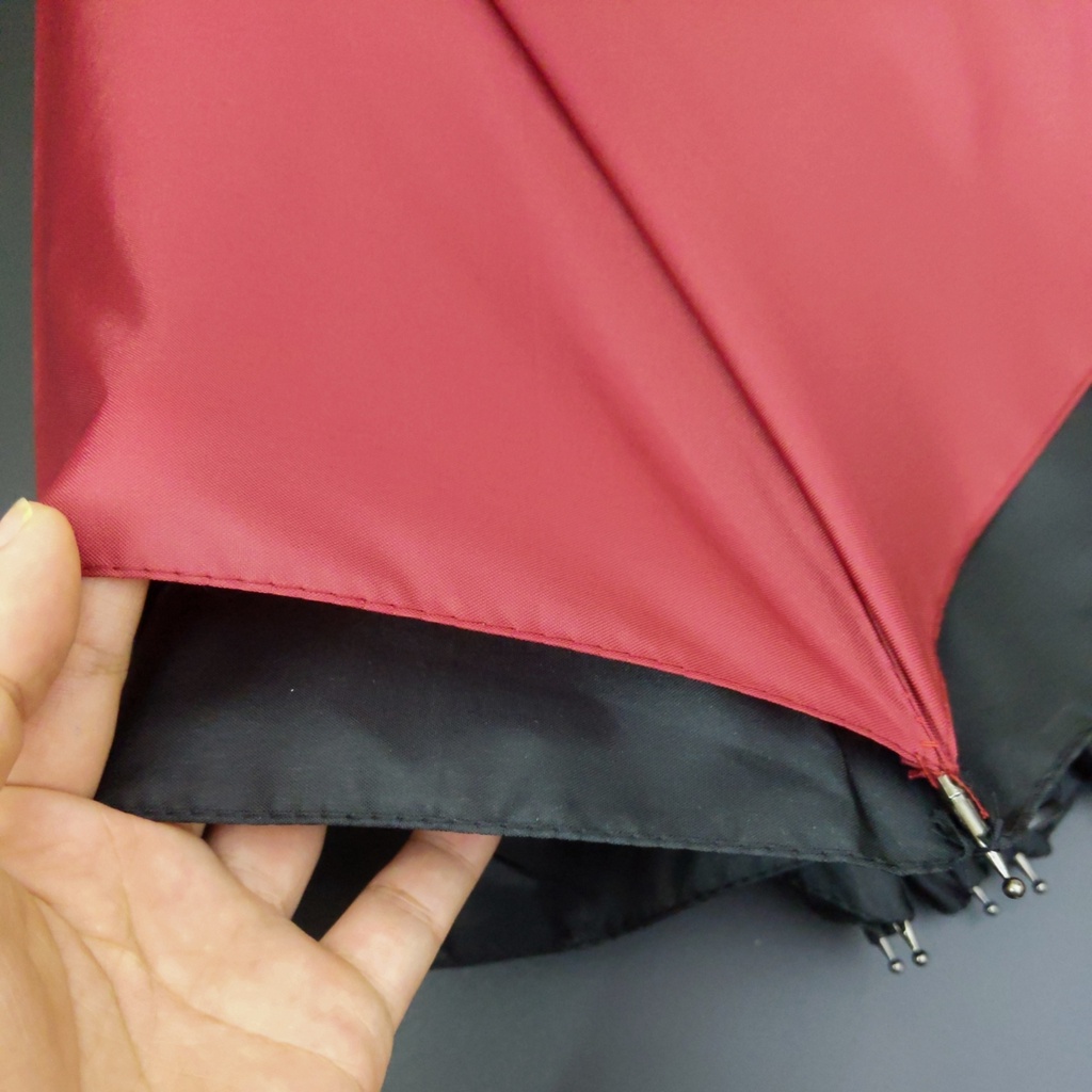 - Bên cạnh đó, cơ chế gấp/mở ngược từ bên ngoài còn có một ưu điểm nổi bật khác, đó là đưa phần mặt ô tiếp xúc với nước thu gọn vào bên trong. Nước sẽ không nhiễu, vấy bẩn ra ngoài sau khi dùng ô. Bạn có thể thoải mái để ô trên sàn xe, ghế ngồi mà không sợ bị thấm nước, bị vấy bẩn.