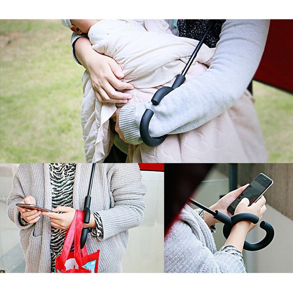 – Tay cầm kiểu chữ C cho phép xỏ tay vào giữ ô bằng cánh tay để cầm nắm nhiều đồ khác