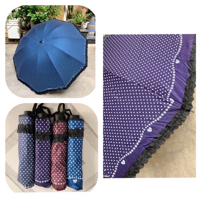 Giới thiệu Ô dù gấp tim viền bèo dễ thương