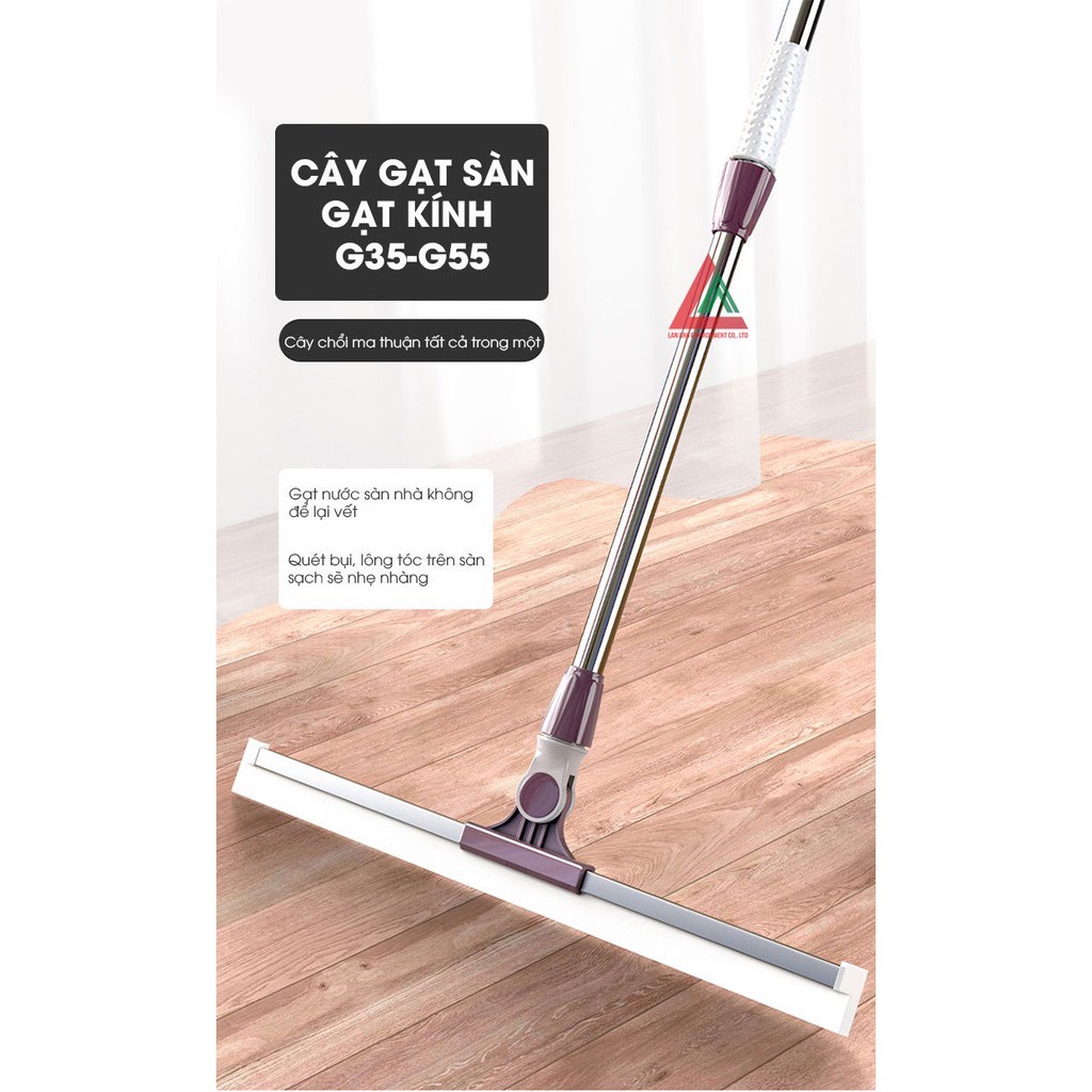 - Cây gạt sàn gạt kính Kitimop- G35-G55 có thiết kế lưỡi silicone mềm dẻo dùng gạt nước cửa kính, sàn nhà hiệu quả, dễ dàng. Cán nối dài tùy chỉnh từ 85cm-135cm giúp chị em gạt nước nhẹ nhàng mà không cần khom cúi. Sản phẩm là hàng công ty cao cấp, độ bền cao.----------------