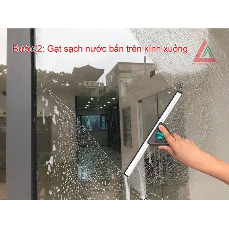 - Bước 1: Dùng bình xịt kính, xịt đều lên bề mặt cửa kính cần làm sạch.