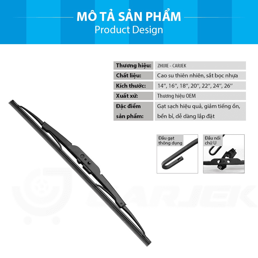 - Phần khung xương được cấu tạo từ chất liệu thép sơn tĩnh điện bền bỉ, cứng cáp. Thiết kế thông minh theo lý thuyết động lực học, giúp mang đến hiệu quả gạt nước tối ưu cho kính ô tô. Spoiler lệch tạo lực ép tối đa lên thanh gạt khi chạy ở tốc độ cao.
