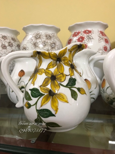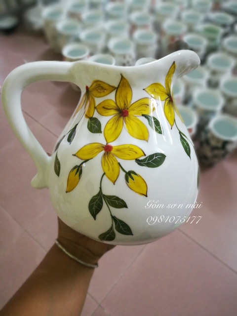 Chất liệu : men trắng, hoạ tiết vẽ tay