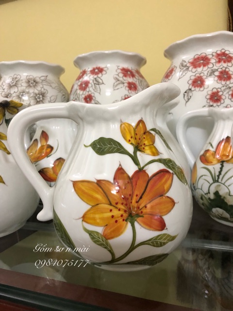 Nhà cửa & Đời sống > Trang trí nhà cửa > Bình trang trí || (Gạt phải chọn mẫu) Lọ hoa dáng bình sữa men trắng vẽ hoạ tiết Bát TràngCòn hàng