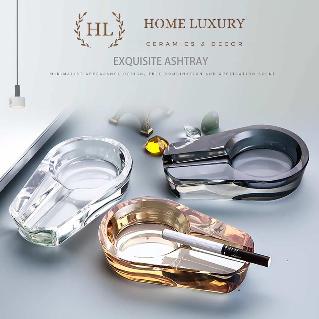 Nếu như gạt tàn sứ tráng men nhìn sang trọng và quyến rũ trong trang trí nội thất giả cổ kiểu hoàng gia hay quý tộc thì gạt tàn thủy tinh trong suốt lại phù hợp với các trang trí nội thất hiện đại tối giản.Toàn bộ gạt tàn là khối thủy tinh trong suốt được tạo ra từ nguồn silica thuần khiết được các nghệ nhân đúc một cách kĩ lưỡng thành những hình khối tuy đơn giản nhưng lại rất nghệ thuật. Phù hợp với các khung cảnh thiết kế nội thất hiện đại, gạt tàn thủy tinh lại rất dễ dàng rửa sạch và mỗi lần sử dụng lại như mới mỗi ngày.