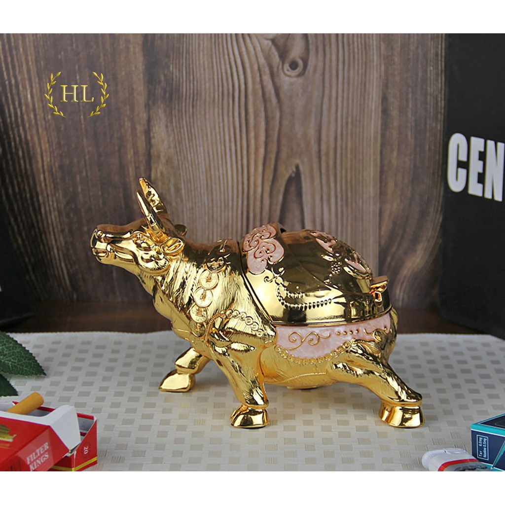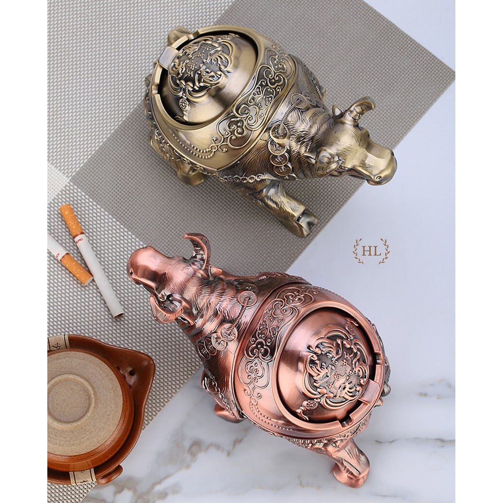 Gạt tàn con Trâu hoạ tiết hoa văn cổ | GẠT TÀN TRÂU 2021 | GẠT TÀN THUỐC LÁ HÌNH TRÂU HỢP KIM ĐỒNG