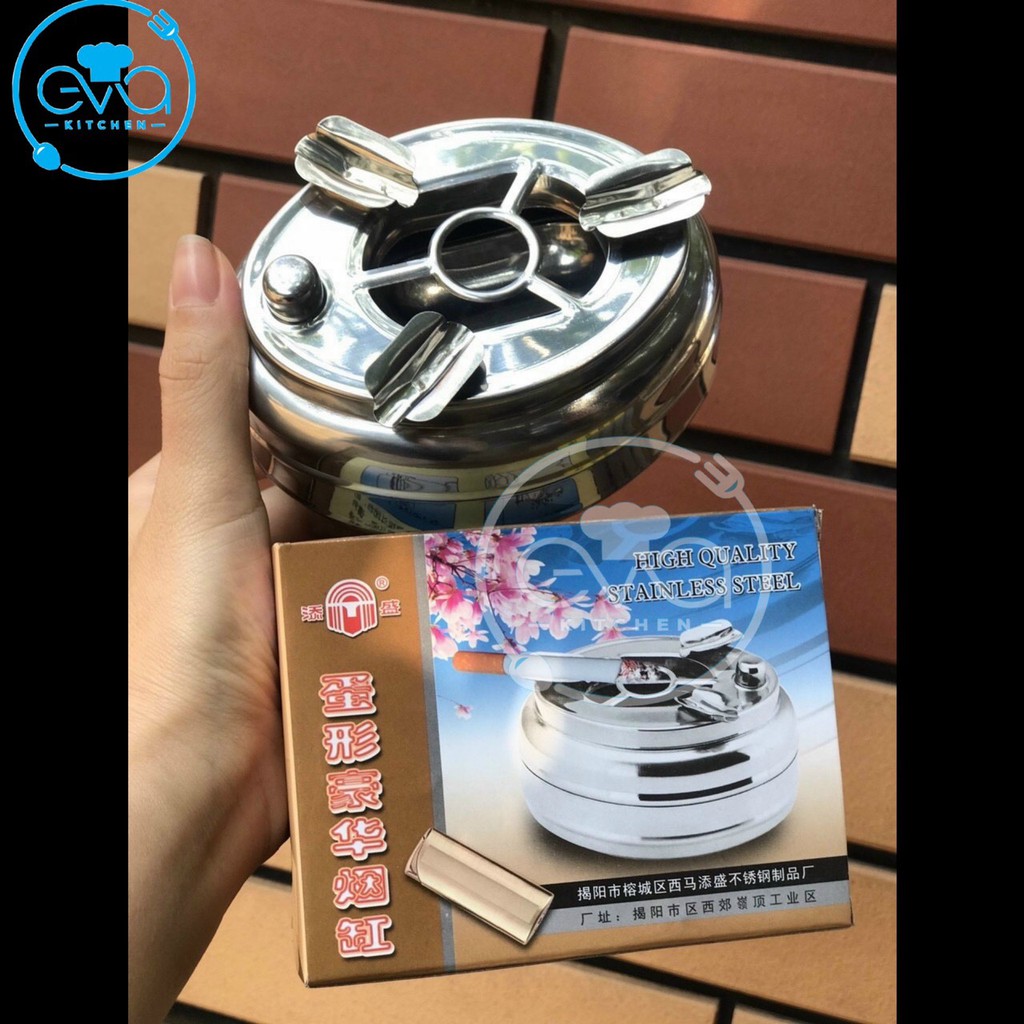 Gạt Tàn Inox Có Nút Bấm Đóng Mở Ngăn Đựng Thông Minh / Gạt Tàn Inox Bấm Nút Tiện Dụng M3335