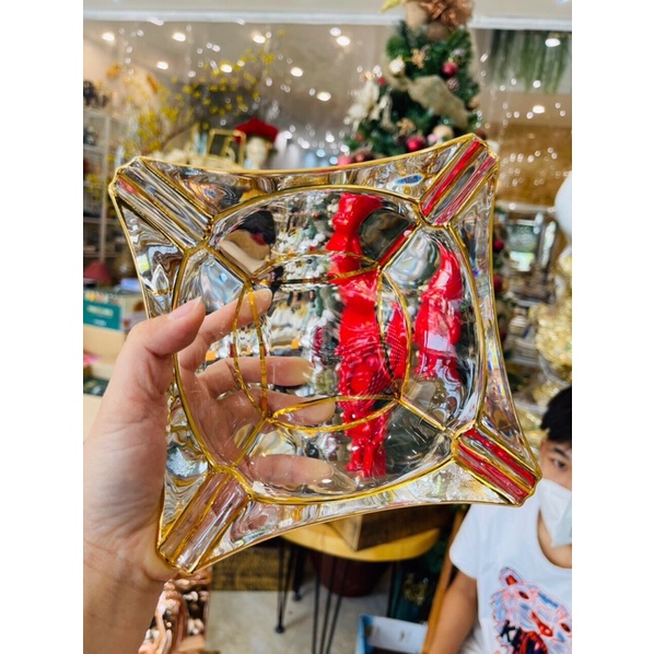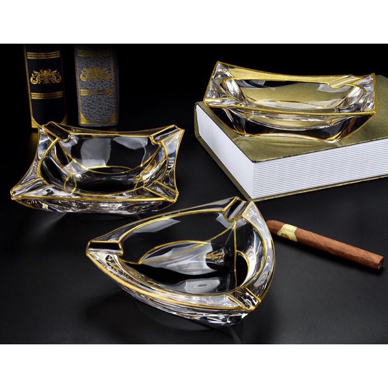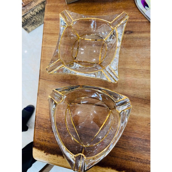 Gạt tàn pha lê hình tam giác, hình vuông viền vàng phong cách Bắc Âu