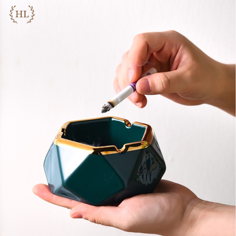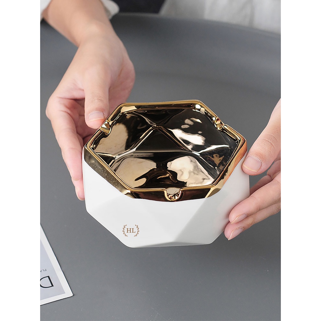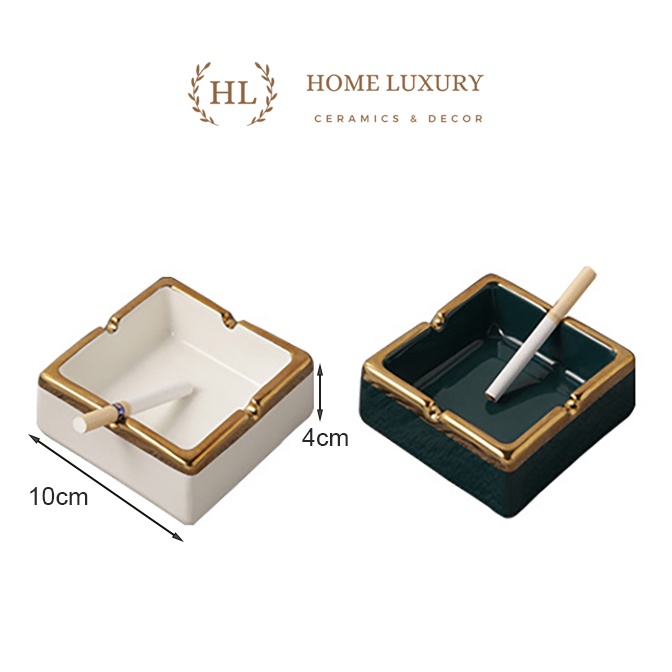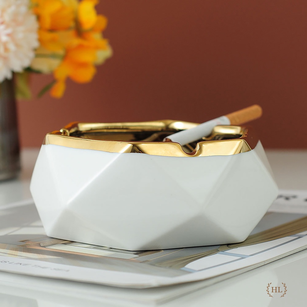 Gạt Tàn Sứ | Gạt Tàn Hoàng Kim Chất Liệu Sứ Kẻ Viền Vàng Phong Cách Tân Cổ Điển NORDIC