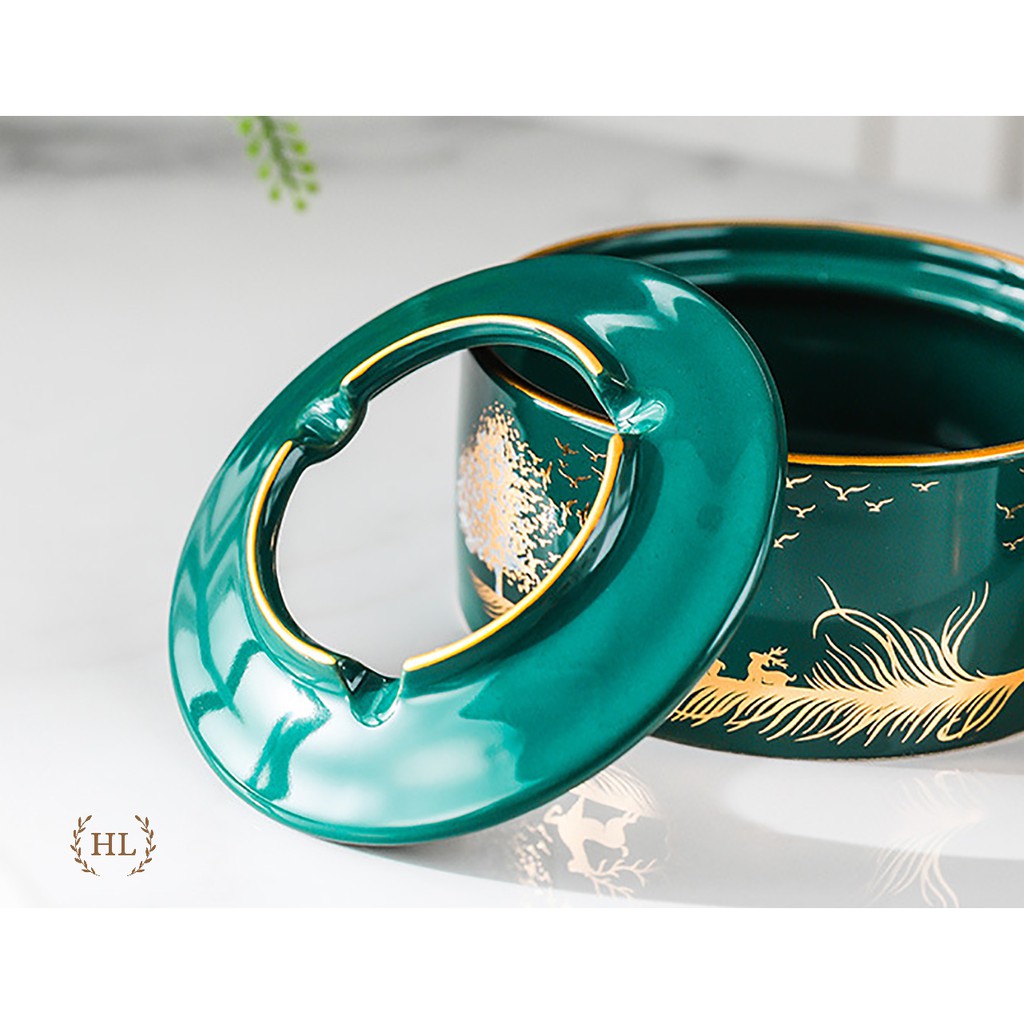 Giới thiệu GẠT TÀN SỨ | GẠT TÀN TRÒN SIZE TO HOA VĂN HỌA TIẾT KẺ VÀNG KIM PHONG CÁCH VITANGE 2022 SỨ XANH TRẮNG