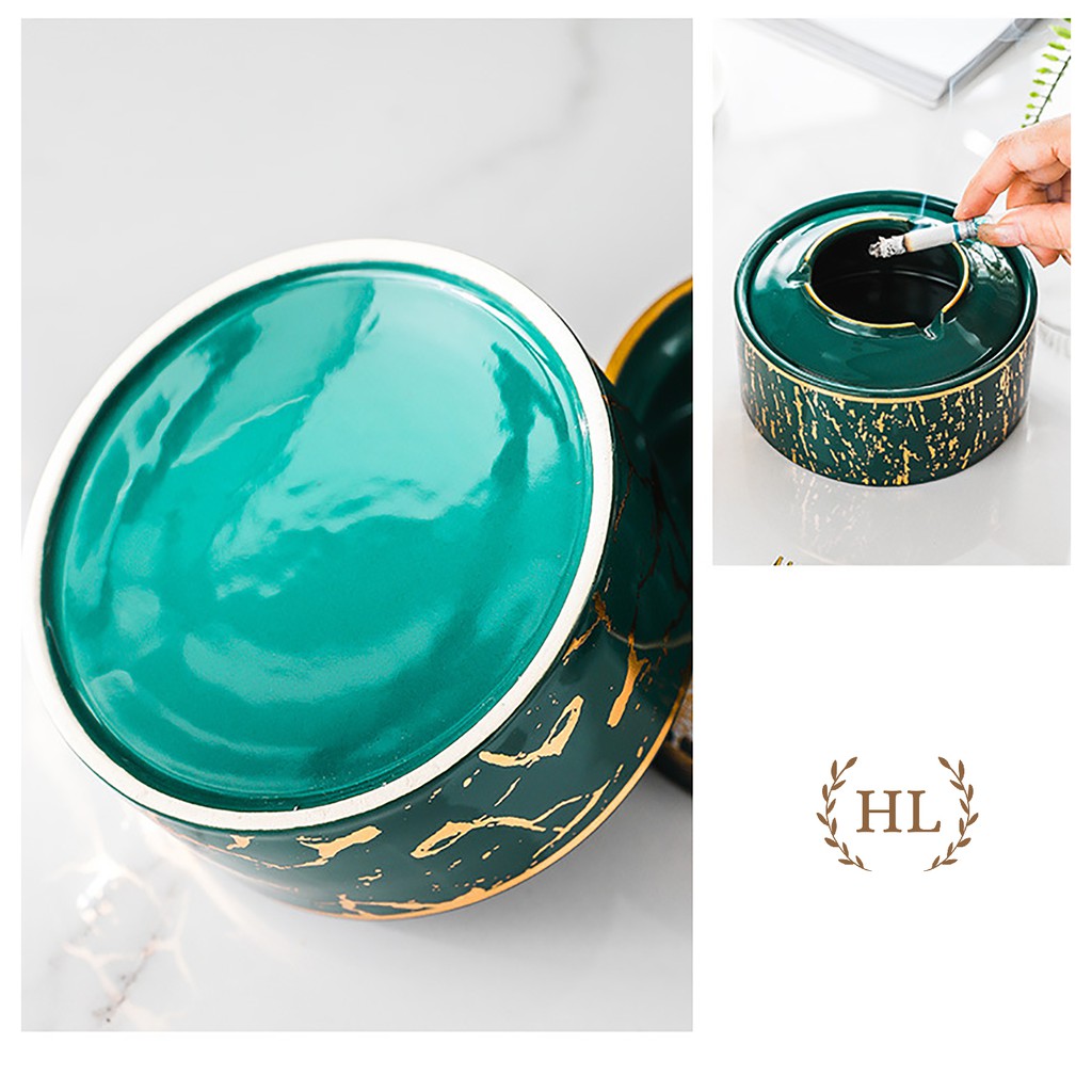 Nhà cửa & Đời sống > Dụng cụ chăm sóc nhà cửa > Thùng rác || GẠT TÀN SỨ | GẠT TÀN TRÒN SIZE TO HOA VĂN HỌA TIẾT KẺ VÀNG KIM PHONG CÁCH VITANGE 2022 SỨ XANH TRẮNGCòn hàng