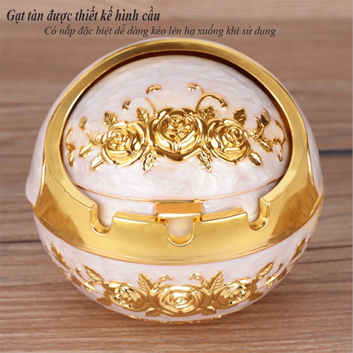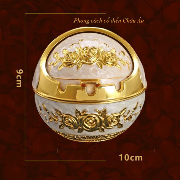 Gạt tàn thuốc lá, hợp kim màu vàng, phong cách cổ điển Hoangf Gia sang trọng, có lắp đậyThông Tin Sản Phẩm: