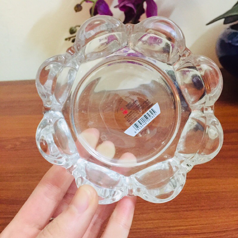 Kích thước: đường kính 10cm, cao 2cm, thuỷ tinh dày 1cm