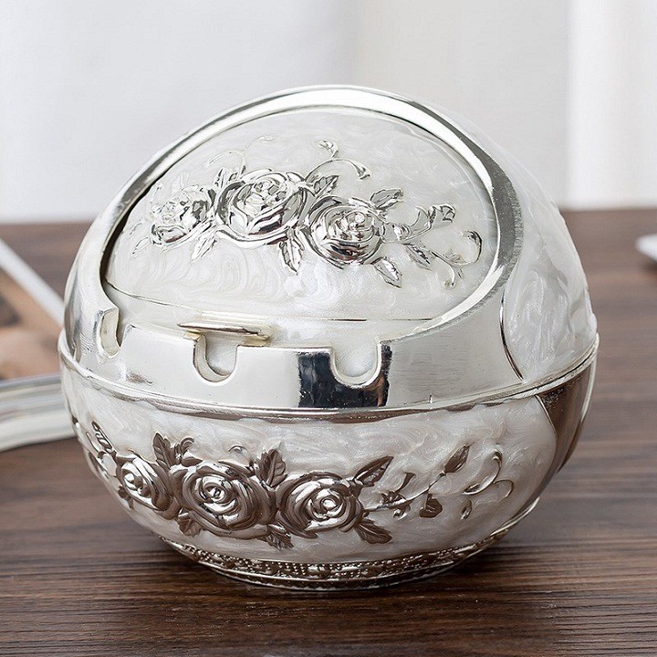 Gạt tàn thuốc lá hợp kim phong cách hoàng gia có nắp đóng mở tiện dụng