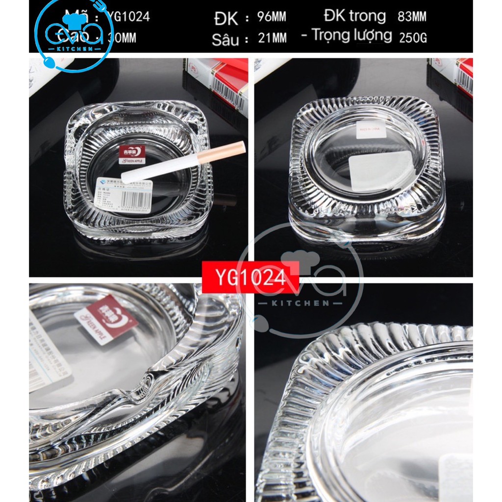 - Sản phẩm gồm : 1 Gạt tàn thuỷ tinh vuông Bầu 1024