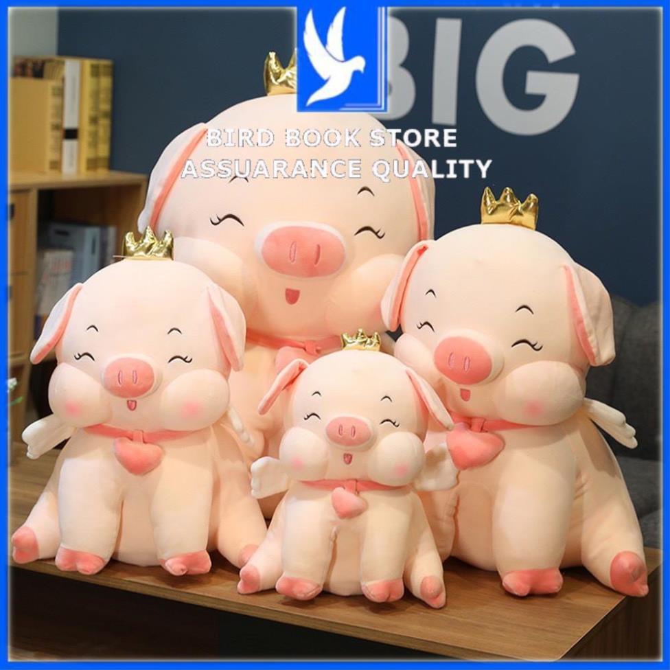 Gấu bông cho bé - gối ôm Heo Vương Miện vải nhung cao cấp co dãn 4 chiều 100% bông gòn bao xinh Bird book