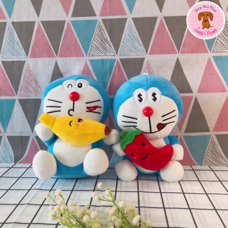 Giới thiệu Gấu Bông Doraemon Ôm Trái Cây 20x13cm