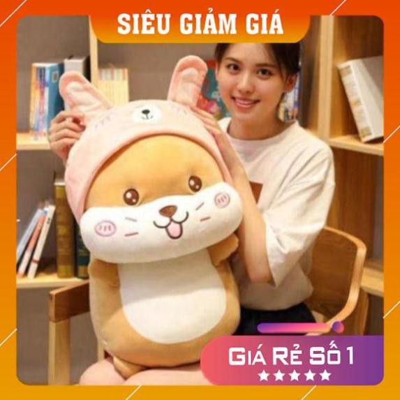 Gấu bông gối ôm chuột hamster mũ hồng vải co dãn 4 chiều