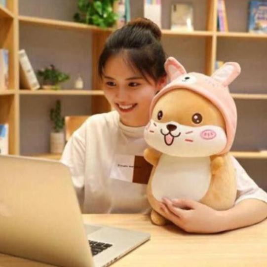 Giới thiệu Gấu bông gối ôm chuột hamster mũ hồng vải co dãn 4 chiều