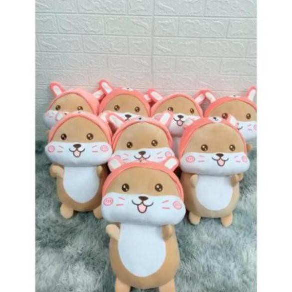 Nhà cửa & Đời sống > Chăn ga gối nệm > Gối ôm || Gấu bông gối ôm chuột hamster mũ hồng vải co dãn 4 chiềuCòn hàng
