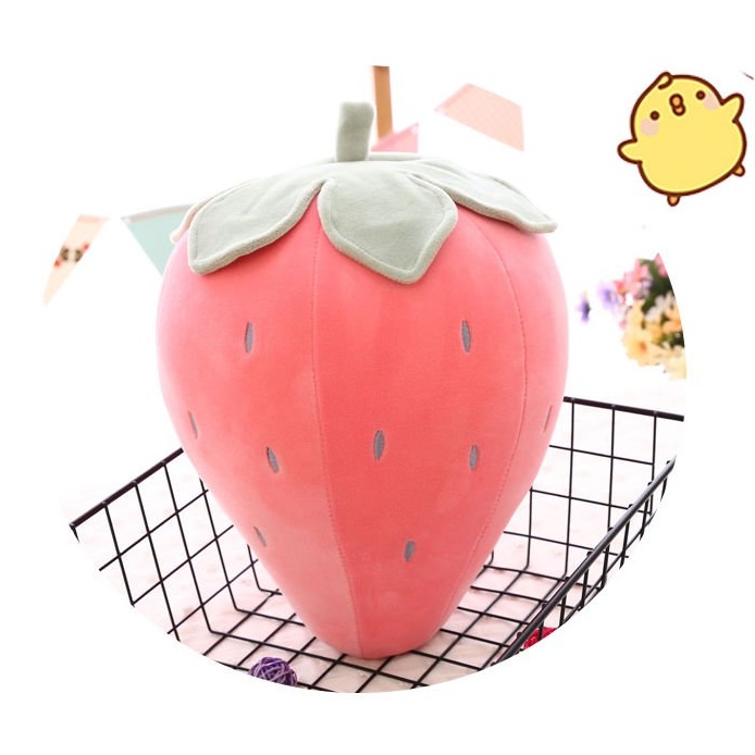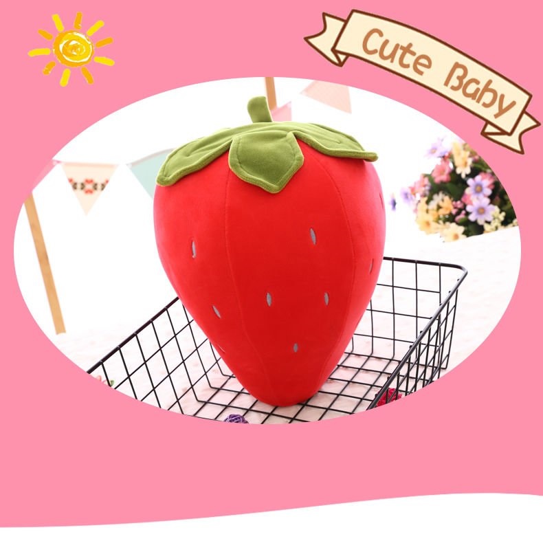 Trái dâu gối bông siêu dễ thương làm từ chất liệu Bông PP cao cấp cùng với đường may chắc chắn và tinh tế, đảm bảo an toàn và sức khỏe của con người, chất liệu bông mềm mại.