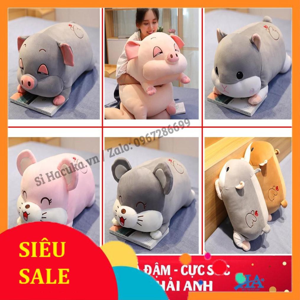 Gấu bông gối ôm thú vải nhung co giãn siêu êmCác mẫu: Lợn béo, chuột béo, sóc béo