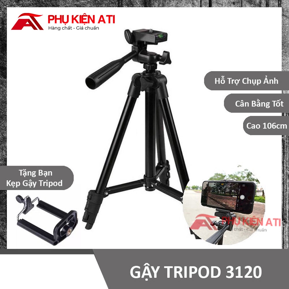 Gậy 3 chân chụp hình máy ảnh, điện thoại Tripod TF - 3120 loại tốtSản phẩm bao gồm 1 thân tripod + 1 giá kẹp điện thoại ( tối đa 6.3 inch) + 1 bao đựng tripod +1 hộp đựng / Remote bluetooth dùng để chụp hình từ xa cho điện thoại ( không quay phim được) các bạn mua chọn phân loại hàng có remote