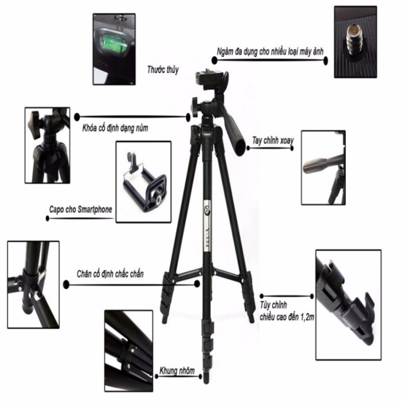 Giới thiệu Gậy 3 chân chụp hình máy ảnh, điện thoại Tripod TF - 3120 loại tốt