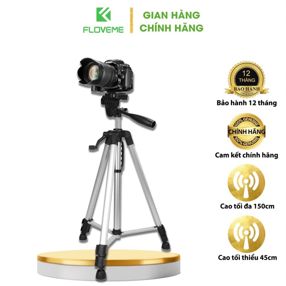 Gậy 3 Chân Máy Ảnh Chụp Hình Selfie Tự Sướng Tripod Floveme - 3366 cao 150cm Kèm Giá Đở Điện Thoại & Máy Ảnh .