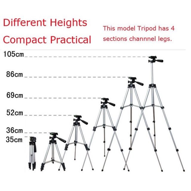 Chất liệu: nhôm cao cấpChiều dài: max – min : 105 – 35 cmSử dụng cho: máy ảnh SDLR, máy ảnh kỹ thuật số, điện thoại di động, máy quay phim mini,…
