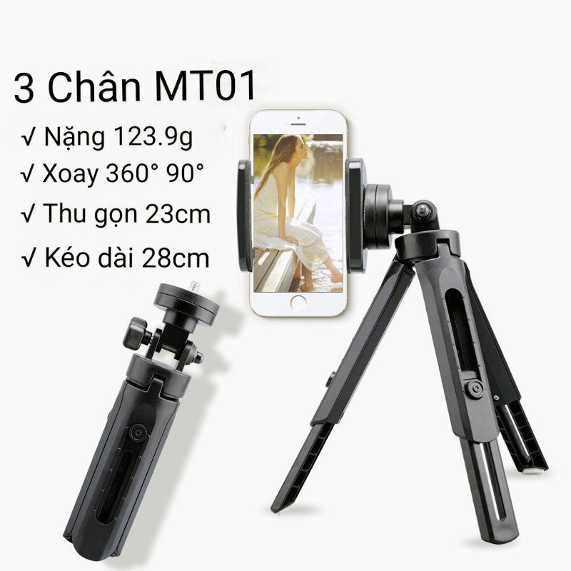 Giá Đỡ Mini Xếp Gọn 3 Chân Tripod Support MT01 Xoay 360 Độ