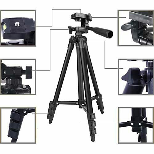 - Chân máy đa năng Tripod với khả năng điều chỉnh chiều cao một cách linh hoạt từ 35 cm đến 110 cm để bạn thoải mái chụp ảnh ở nhiều góc độ khác nhau.Sản phẩm làm bằng inox và nhựa cao cấp với kiểu dáng hiện đại và nhỏ gọn, có thể dễ dàng mang theo khi đi du lịch, dã ngoại... Trục giữa linh hoạt có thể xoay lên, xuống và xoay tròn 360 độ giúp bạn dễ dàng bắt được những góc hình ưng ý nhất. Đặc biệt bạn được tặng kèm 1 đầu cố định điện thoại và máy ảnh giúp cho bạn có thể dễ dàng có được những bức ảnh tuyệt đẹp cùng gia đình, bạn bè...