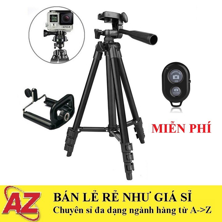 - Sản phẩm: Tripod + Túi Đựng miễn phí đầu kẹp điện thoại + remote chụp ảnh bluetooth
