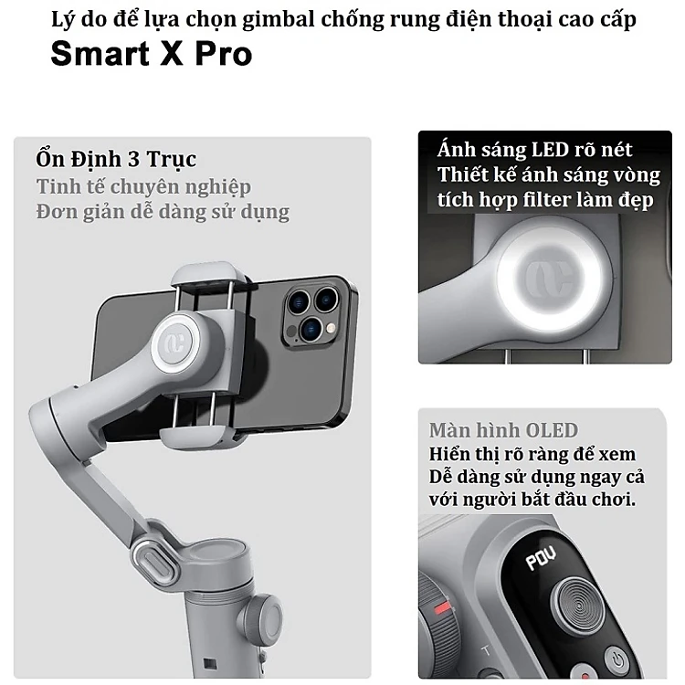 Giới thiệu Gậy chống rung gimbal 3 trục Smart XPRO, Tay cầm gimbal chống rung cho điện thoại, quay phim làm TikTok - Hàng chính hãng