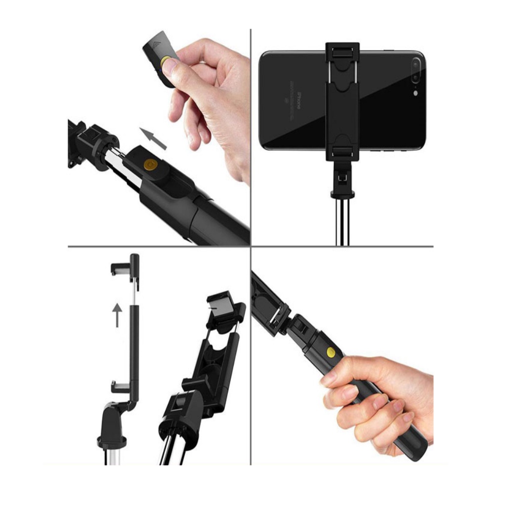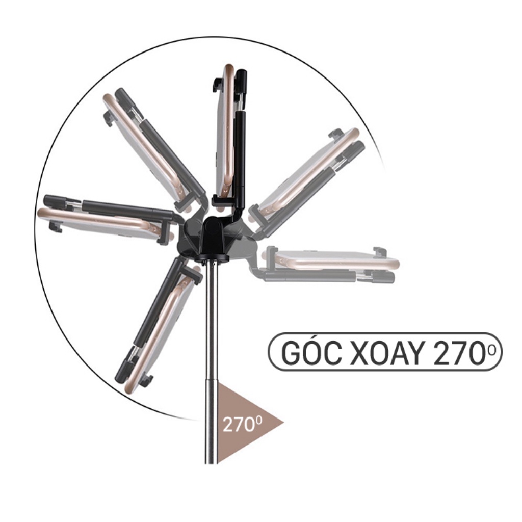 - Đa năng: gậy chụp ảnh 3 chân, giá đỡ điện thoại xem phim, cây livestream, gậy tự sướng chụp ảnh từ xa với nút bấm điều khiển Bluetooth.