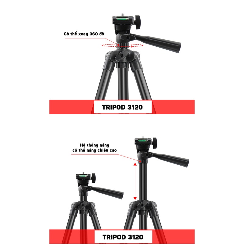 Điện Thoại & Phụ Kiện > Phụ kiện > Phụ kiện selfie > Giá đỡ || Gậy Chụp Ảnh 3 Chân Tripod 3120 có tay cầm tặng kèm đầu kẹp tương thích nhiều dòng máy điện thoại - BELOCòn hàng