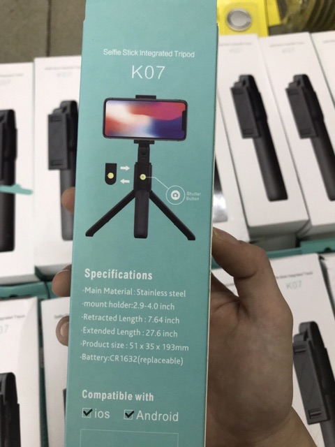 Giới thiệu Gậy chụp ảnh 3 chân tự sướng chụp hình selfie kèm nút bluetooth kiêm tripod K07