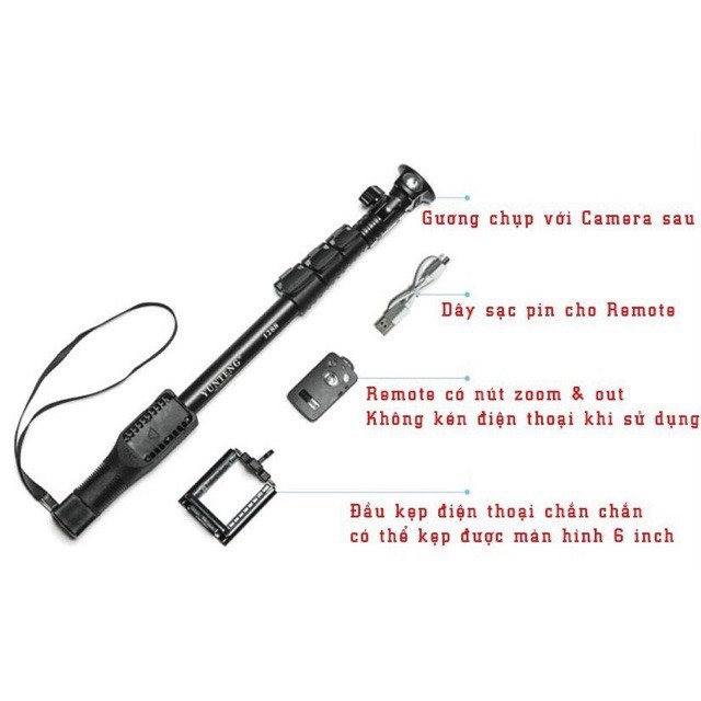 Gậy cao cấp yunteng YT-1288 selfie bluetooth sử dụng cho điện thoại - máy ảnh chuyên nghiệp - camera hành trình Action - camera Gopro - SJCam - camera Action xiaomiSản phẩm gồm : gậy chụp hình YT-1288 + nút bluetooth + dây sạc