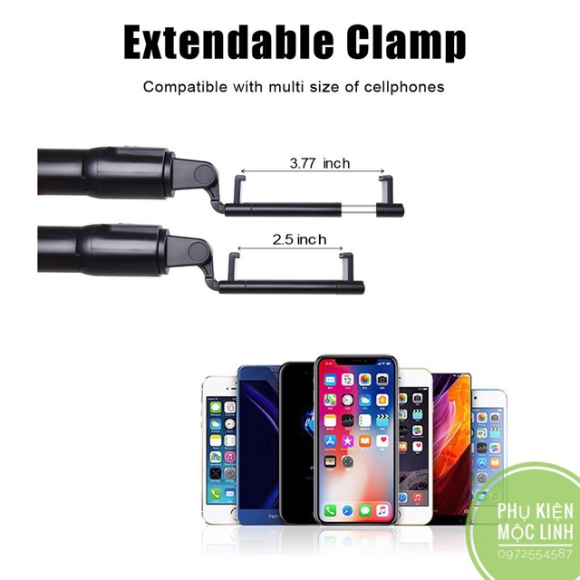 Phần kẹp giữ điện thoại có thể dùng cho điện thoại từ 4.7-6 inch với góc xoay 270 độ linh hoạt cho bạn điều chỉnh góc độ chụp dễ dàng.
