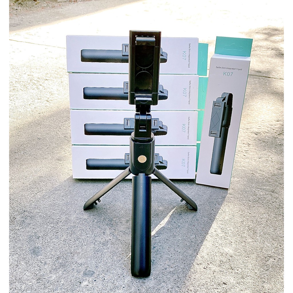 - Gậy tự sướng 3 chân Bluetooth K07 là một sản phẩm “lai” giữa gậy tự sướng với chân chụp ảnh (tripod). Thiết kế Tripod 3 chân gọn gàng, chắc chắn, bạn không cần đến phó nháy vẫn có được 1 bức ảnh đẹp từ mọi góc độ.