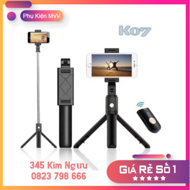 Điện Thoại & Phụ Kiện > Phụ kiện > Phụ kiện selfie > Gậy selfie || Gậy Chụp Ảnh K07 Kèm Nút Bấm BluetoothCòn hàng