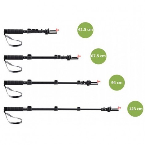 Dài 42,5cm khi rút gọn, có thể kéo dài ra 1,25 mét khi sử dụng.