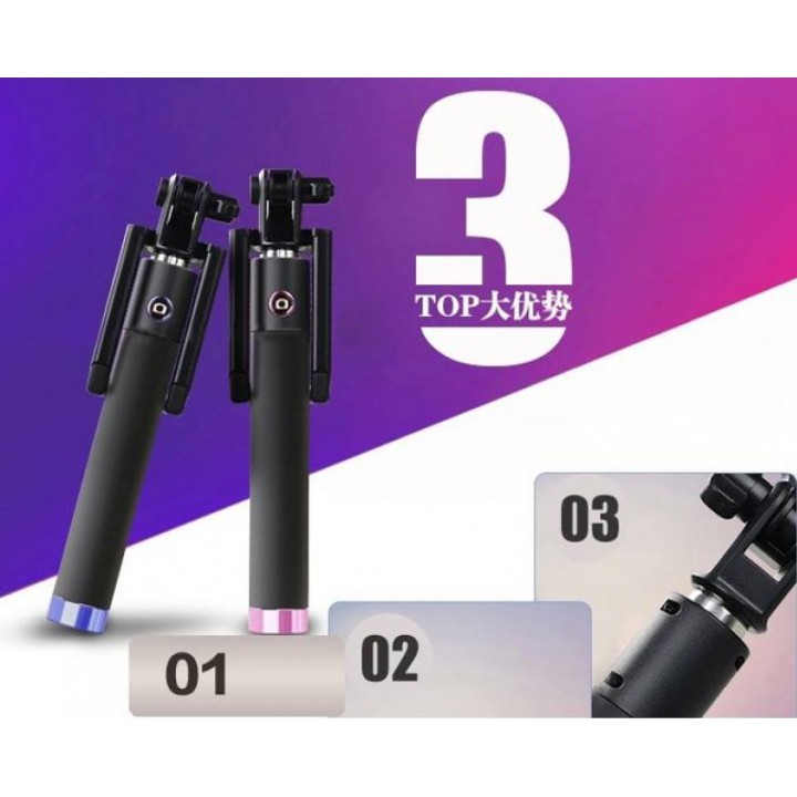 Đối với Gậy Chụp Ảnh sử dụng dây kết nối thì chỉ cần Ghim dây vào và sử dụng là được.