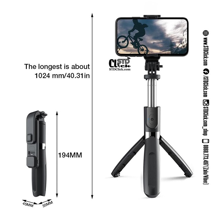 GẬY CHỤP ẢNH KIÊM TRIPODS CÓ ĐIỀU KHIỂN BLUETOOTH L02s CÓ ĐÈN KÈM ĐÈN HÀNG CAO CẤPGẬY CHỤP ẢNH KIÊM TRIPODS CÓ ĐIỀU KHIỂN BLUETOOTH L02s CÓ ĐÈN KÈM ĐÈN HÀNG CAO CẤP rất đa năng. Nó có thể được sử dụng như gậy tự sướng và tripods. Đồng thời, sản phẩm còn tích hợp đèn giúp tiện lợi hơn trong việc chụp ảnh, quay phim. Hơn nữa, sản phẩm có kích thước mở rộng là 40,3 inch. Do đó, sản phẩm có thể đáp ứng nhu cầu của bạn cho các tình huống ứng dụng khác nhau cùng một lúc.