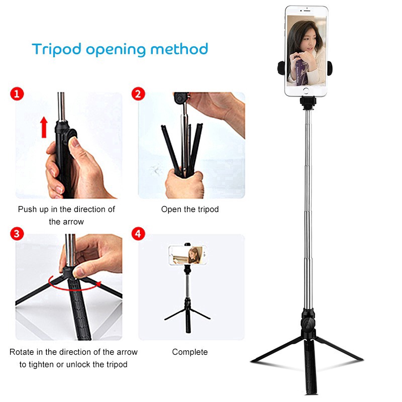 Gậy chụp ảnh selfie Bluetooth không dây XT10 cho điện thoại có thể gập lại - kẹp điện thoại cầm tayĐặc điểm: