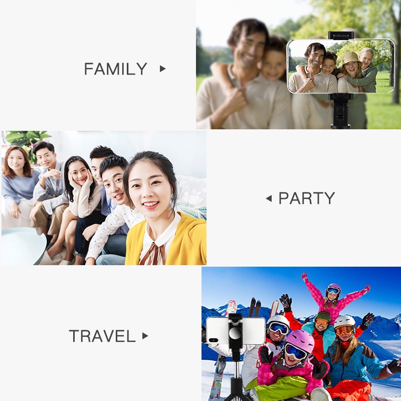 【Gậy chụp ảnh selfie có điều khiển từ xa】 Gậy chụp ảnh selfie 3 trong 1 tích hợp điều khiển từ xa không dây, dễ dàng chụp ảnh selfie hoặc chụp ảnh nhóm, thích hợp cho các bữa tiệc, du lịch, đi bộ đường dài, v.v. Ngoài ra, bạn có thể sử dụng sản phẩm này như một giá đỡ ba chân nhanh chóng và dễ dàng.
